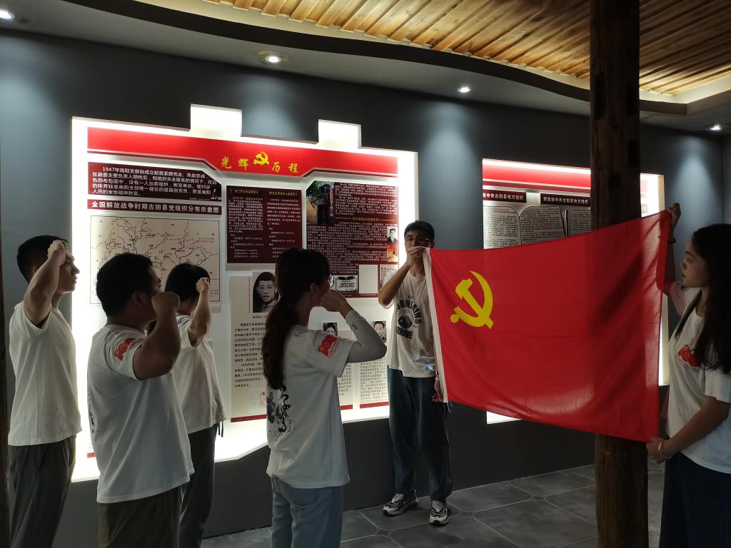 在黃孝敏烈士故居,支部黨員、青年學(xué)生深刻體會到黃孝敏烈士堅韌不拔的斗爭精神、矢志不渝的理想信念、視死如歸的英雄氣概,參觀結(jié)束后,師生面向黨旗,莊嚴(yán)宣誓,鏗鏘恢宏的誓詞,一字一句,神圣而豪邁,體現(xiàn)了對中國共產(chǎn)黨的無限忠誠和為共產(chǎn)主義事業(yè)奮斗終身的堅定決心。在前洋革命歷史展陳館,師生們被革命先烈的革命精神深深感動與鼓舞,紛紛表示要珍惜來之不易的幸福生活,講好紅色故事,傳承紅色基因,永遠(yuǎn)跟黨走,奮進(jìn)新時代。