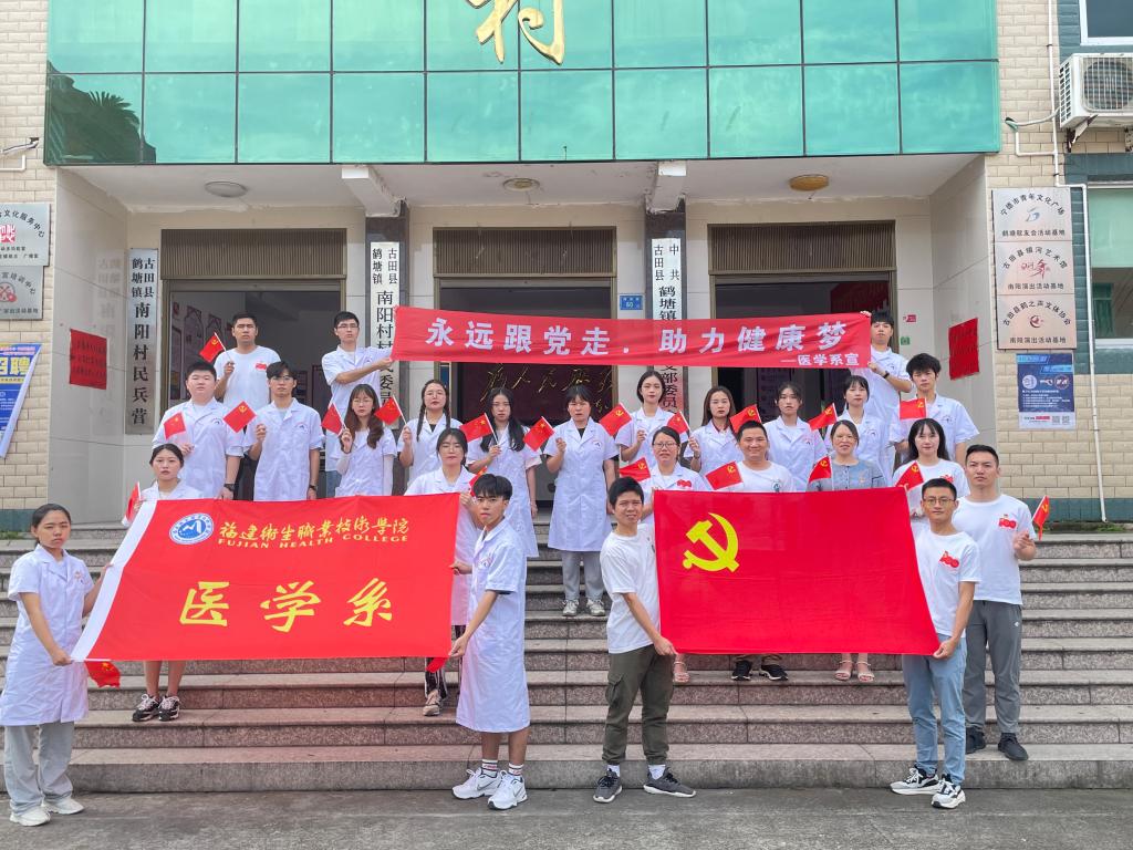 為倡導(dǎo)健康生活方式、助力基層群眾健康,師生們來到古田縣鶴塘鎮(zhèn)南陽村進(jìn)行義診活動。在義診服務(wù)之余,還為村民們提供常見病咨詢、悉心指導(dǎo)用藥,疫情防護(hù)等科普知識。暖心的義診活動深受廣大村民的歡迎,不僅消除了群眾疾病的隱患,減輕了他們的負(fù)擔(dān),同時強(qiáng)化了村民的健康管理意識。學(xué)生們用自己的實踐獻(xiàn)禮百年華誕,用自己的所學(xué)為筑夢健康中國助力,以實際行動踐行了醫(yī)學(xué)生的初心使命。