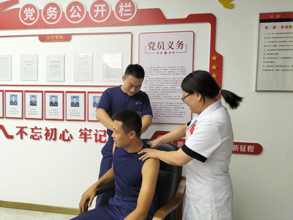 由于消防員職業(yè)的特殊性,他們大多存在頸肩、腰背疼痛等問題,師生們?yōu)槠涮峁┩颇?、拔罐、刮痧等義診服務(wù);消防員表示此次學(xué)習(xí)收獲頗多,希望后期有更多的學(xué)習(xí)義診活動(dòng)。