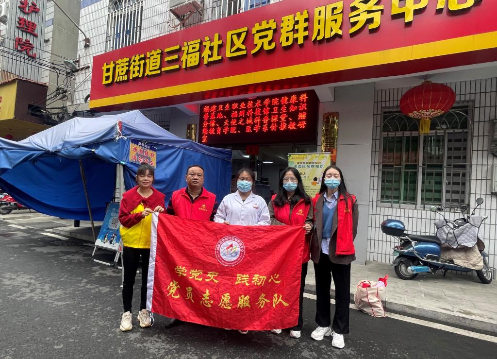 為充分發(fā)揮黨員的先鋒模范作用,普及慢病知識,提高基層群眾對慢病的管理能力,2021年10月20日,醫(yī)學系黨總支第一黨支部黨員教師巫詩雨隨閩侯縣科協(xié)一行赴閩侯縣三福社區(qū)開展“高血壓病防治”科普活動。