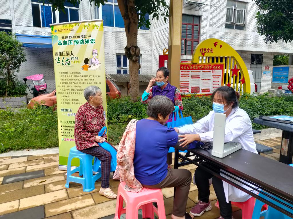 活動中,巫詩雨為現(xiàn)場的社區(qū)居民進行了淺顯易懂、生動形象的高血壓防治知識科普知識講解,讓老百姓充分認識到高血壓疾病的危害性、如何干預(yù)高血壓的危險因素、如何正規(guī)治療高血壓等方面的知識,還為群眾測量血壓并解答有關(guān)慢病規(guī)范治療管理等內(nèi)容。