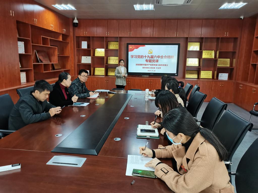 為進一步學習貫徹落實黨的十九屆六中全會精神,加強支部黨員理論水平及黨性修養(yǎng),2021年11月24日上午,醫(yī)學系第三黨支部副書記葉汝萍為支部黨員講授《深刻理解中國共產(chǎn)黨百年奮斗的歷史意義》的專題黨課。