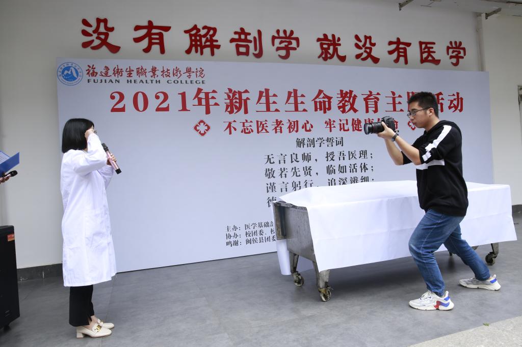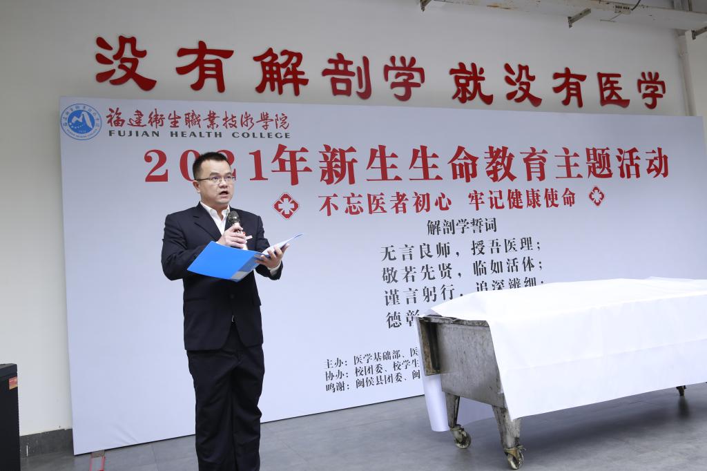 為讓年輕學(xué)子們切身體會(huì)生命的崇高與不朽,踐行“敬佑生命、救死扶傷、甘于奉獻(xiàn)、大愛無(wú)疆”的醫(yī)護(hù)精神,11月18日,醫(yī)學(xué)系第四黨支部在醫(yī)學(xué)基礎(chǔ)部一樓中庭和學(xué)術(shù)報(bào)告廳開展以“不忘醫(yī)者初心 牢記健康使命”為主題的生命教育黨日活動(dòng)。校長(zhǎng)許能鋒,團(tuán)委、學(xué)生工作部、醫(yī)學(xué)系負(fù)責(zé)人,醫(yī)學(xué)基礎(chǔ)部全體教師、輔導(dǎo)員代表、各系2021級(jí)學(xué)生代表、第二課堂學(xué)生參加活動(dòng),閩侯縣團(tuán)委、閩侯縣青少年宮、福州英華職業(yè)學(xué)院、閩侯職業(yè)中專學(xué)校師生代表受邀出席,共有397人參加此次活動(dòng)。