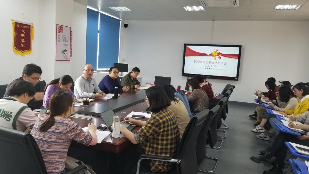3月18日,我系在實訓樓311會議室召開醫(yī)學系黨史學習教育動員大會,會議由黨總支書記邱滾忠主持,全系教職工參加了本次動員會。