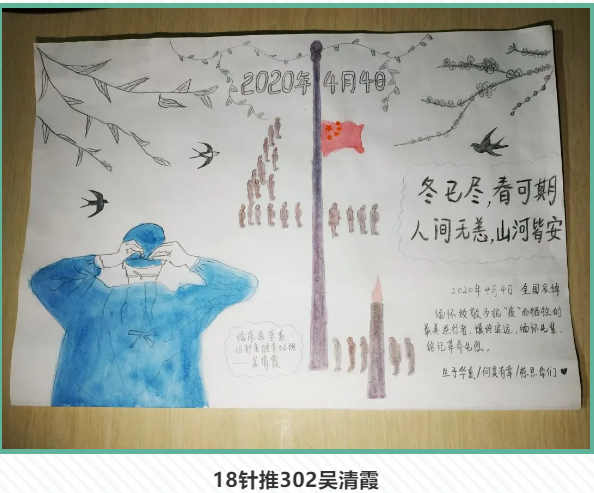 清明是追思過往的回眸,也是希冀未來的遙望。我們感謝白衣天使們堅守為我們帶來的春暖花開的希望,致敬最美逆行者,致敬英勇的抗“疫”烈士,致敬中國的脊梁!在向抗“疫”英烈緬懷致敬的同時,我們也要堅定信心!同舟共濟,以必勝的決心,打贏這場疫情阻擊戰(zhàn)!以蓬勃的姿態(tài),迎接更加遼闊的生命。而我們作為新青年,更應(yīng)該時刻提醒自己肩負著時代責任與復(fù)興偉業(yè),希望同學(xué)們能在黨和人民最需要的地方綻放青春,留下充實溫暖,持久無悔的回憶。