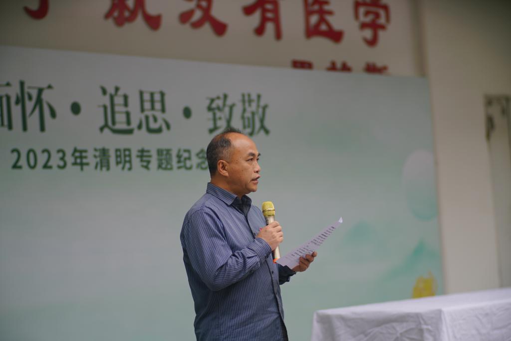 4月4日,我校舉辦以“緬懷?追思?致敬”為主題的2023年師生清明追思專題紀(jì)念活動?;顒佑尚F(tuán)委、醫(yī)學(xué)院主辦,醫(yī)學(xué)院教師第二黨支部、醫(yī)學(xué)院團(tuán)總支、解剖教研室、校健康科普青年講團(tuán)承辦。校長許能鋒、校團(tuán)委書記林桂松、醫(yī)學(xué)院黨政領(lǐng)導(dǎo)班子及師生代表參加此次活動,閩侯縣青少年宮、閩侯縣職業(yè)中專學(xué)校師生代表受邀出席活動,活動由醫(yī)學(xué)院教師第二黨支部入黨積極分子林玉瓊老師主持。