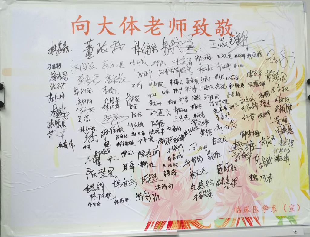 “大體老師”是醫(yī)學界對遺體捐贈者的尊稱。這些遺體捐獻者用他們的軀體,讓學生們直觀了解人體基本知識,是醫(yī)學學生的無語良師?;顒娱_始,學生代表周天陽和鄭妍冰同學分別帶來朗誦與感悟共享,醫(yī)學教育離不開人體標本,正是有了大體老師的無私奉獻,才能培養(yǎng)出醫(yī)術精湛的大夫。接著,全體老師與學生為大體老師默哀一分鐘,追思推動醫(yī)學教育事業(yè)發(fā)展的無語良師,為這份無言的奉獻表達最崇高的敬意,并敬獻菊花,在活動簽字墻簽字留念。