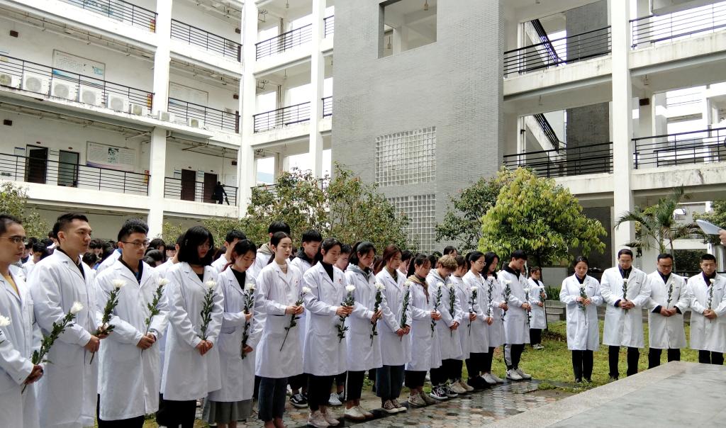 2019年4月3日,時值清明之際,臨床醫(yī)學系于基礎部一樓舉辦向大體老師致敬活動,系部領導、輔導員及學生代表近百人參加本次活動。