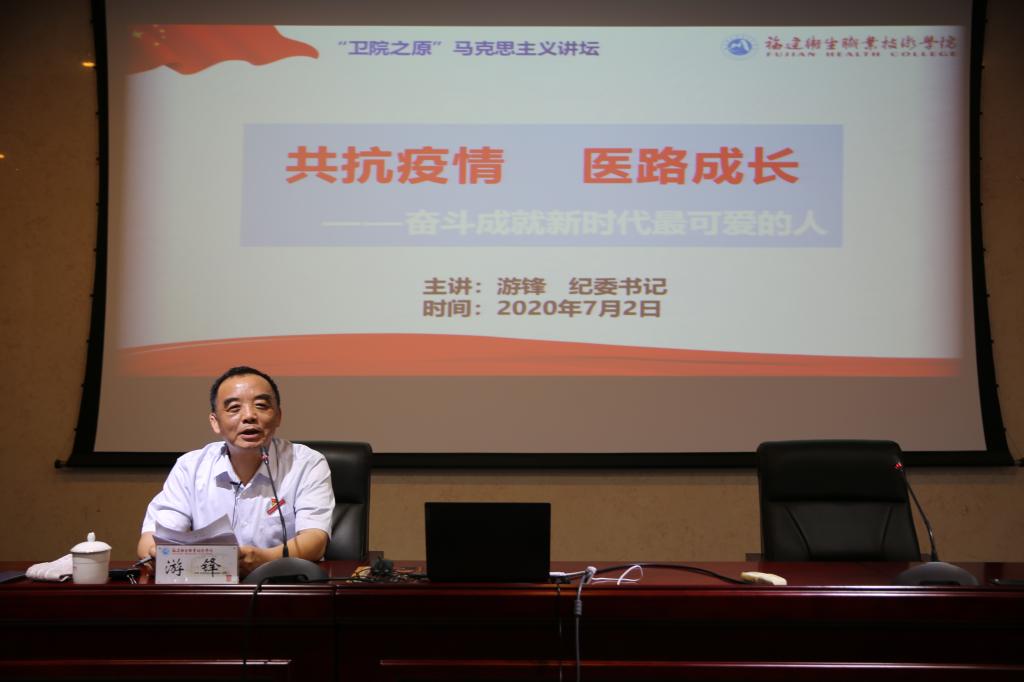 2020年7月2日下午,學(xué)院紀(jì)委書記游鋒為我系18級(jí)返校的同學(xué)作了一堂名為《共抗疫情、醫(yī)路成長(zhǎng)——奮斗成就新時(shí)代最可愛的人》的形勢(shì)政策課。講座由系黨總支負(fù)責(zé)人陳俊穎主持。