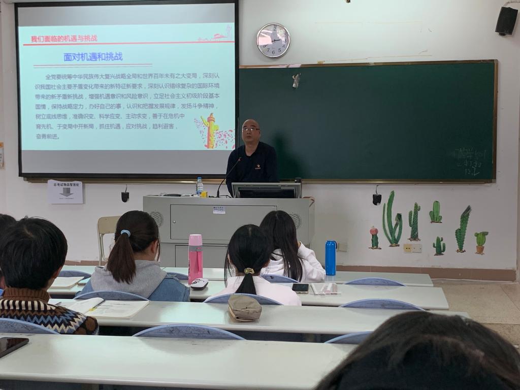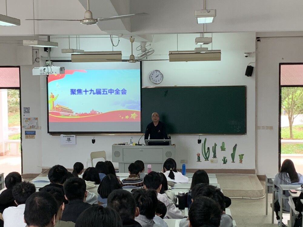 邱滾忠書記從十九屆五中全會(huì)背景介紹起,“十四五”時(shí)期是我國全面建成小康社會(huì)、實(shí)現(xiàn)第一個(gè)百年奮斗目標(biāo)之后,乘勢而上開啟全面建設(shè)社會(huì)主義現(xiàn)代化國家新征程、向第二個(gè)百年奮斗目標(biāo)進(jìn)軍的第一個(gè)五年。我國發(fā)展仍然處于重要戰(zhàn)略機(jī)遇期,但面臨的國內(nèi)外環(huán)境正在發(fā)生深刻復(fù)雜變化。邱書記還講解了“十三五”以來取得的成就以及我們面臨的機(jī)遇與挑戰(zhàn),同學(xué)們聽后紛紛表示將繼續(xù)認(rèn)真學(xué)習(xí)黨的十九屆五中全會(huì)精神,并積極投身新征程,展現(xiàn)新作為,為全面建設(shè)社會(huì)主義現(xiàn)代化國家貢獻(xiàn)自己的力量。