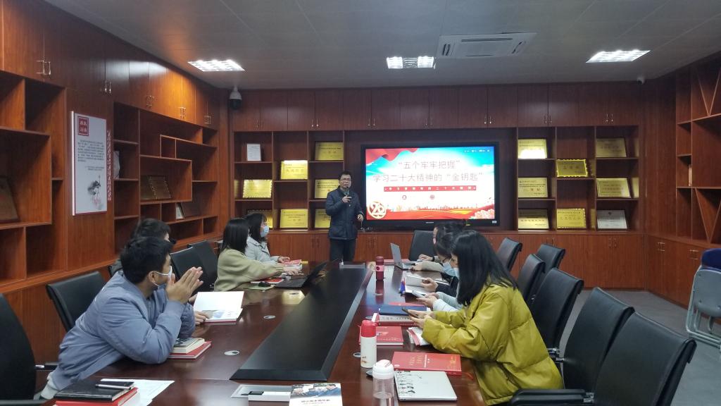 為深入學(xué)習(xí)宣傳貫徹黨的二十大精神,12月15日,醫(yī)學(xué)院教師第三黨支部書記陳銘向支部全體黨員師生宣講黨的二十大精神。陳銘結(jié)合黨的二十大報(bào)告原文,做了題為“‘五個(gè)牢牢把握’,學(xué)習(xí)黨的二十大精神的‘金鑰匙’”的宣講報(bào)告。陳銘從“牢牢把握過去5年工作和新時(shí)代10年偉大變革的重大意義,堅(jiān)定歷史自信,增強(qiáng)歷史自覺,把握歷史主動(dòng)”“牢牢把握習(xí)近平新時(shí)代中國(guó)特色社會(huì)主義思想的世界觀和方法論,深刻領(lǐng)會(huì)黨的創(chuàng)新理論蘊(yùn)含的道理學(xué)理哲理”“牢牢把握以中國(guó)式現(xiàn)代化全面推進(jìn)中華民族偉大復(fù)興的使命任務(wù),明確中國(guó)共產(chǎn)黨要干什么的根本問題”“牢牢把握以偉大自我革命引領(lǐng)偉大社會(huì)革命的重要要求,確保黨永遠(yuǎn)不變質(zhì)、不變色、不變味”“牢牢把握?qǐng)F(tuán)結(jié)奮斗的時(shí)代要求,創(chuàng)造新的偉業(yè),開辟美好未來”5個(gè)方面對(duì)黨的二十大精神作了宣講和闡述,并結(jié)合學(xué)院工作,帶領(lǐng)全體黨員師生回顧初心、立足當(dāng)前、展望規(guī)劃未來。