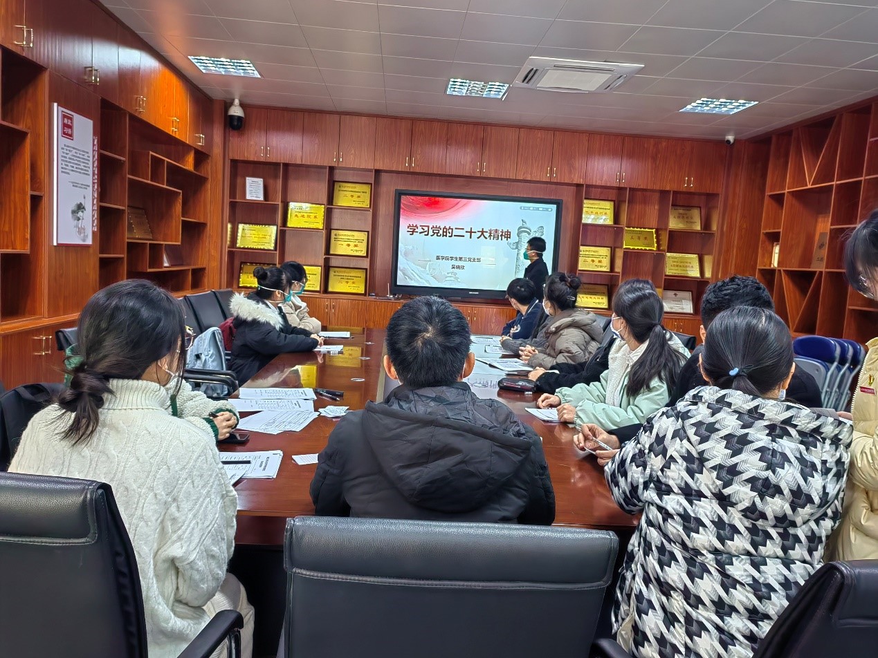 “過去黨代會的報告中,科技一般安排在經(jīng)濟建設中,教育一般是安排在社會建設中,人才安排在黨的建設中,黨的二十大報告第一次把科教興國、人才強國、創(chuàng)新驅動發(fā)展三大戰(zhàn)略放在一起集中論述,系統(tǒng)部署,我國教育、科技和人才事業(yè)發(fā)展路徑更加清晰了。”12月19日下午,醫(yī)學院實訓樓311會議室激情四溢,醫(yī)學院學生第三黨支部書記吳曉欣正在給支部黨員講黨課,學習宣講黨的二十大精神。黨員們仔細聆聽,現(xiàn)場學習氛圍濃厚。