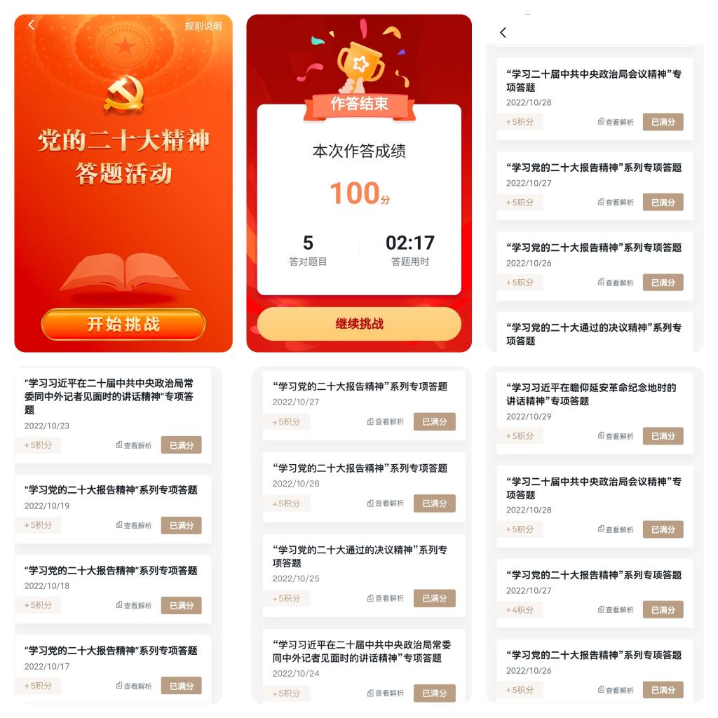 支部黨員同志積極參加學(xué)習(xí)強(qiáng)國黨的二十大精神專題答題活動,鞏固知識,學(xué)習(xí)的時間、空間不受限,營造良好的學(xué)習(xí)氛圍。