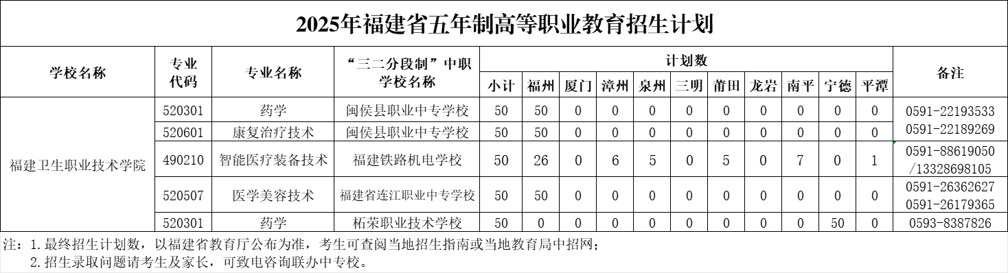 福建衛(wèi)生職業(yè)技術(shù)學(xué)院2025年五年制高等職業(yè)教育招生計(jì)劃